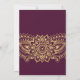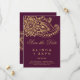 Att spara datumkortet är perfekt för ett elegant bröllop. Den mehndi-designen har en underbar blommigt henna mandala och paisley motif på burgundisk bakgrund. Obs! Den här designen har inte äkta guld-folie. Det är en grafik av hög kvalitet som framställs som guld-folie.