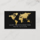 Världskarta för Faux-guld-folie på svartvit bakgrund, minimalt och modernt affärskort för en agent-, rese-, semesterbolls- eller destinationsbröllopsplanerare eller en internationell försäljningsanställd i internationell. Typsnitt och kortbakgrunden färg kan ändras så att de passar din småföretagare som varumärkesger färger. Fett är en tryckt effekt, inte en autentisk folie.