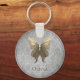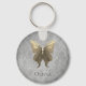Behålla nycklar för din bil och ditt hem med en judisk fjärilscykel. Nyckelkedjans konstruktion har en smyckad fjäril mot ett grått-dammmönster i elegantens vintage. Ytterligare presentartiklar tillgängliga med den här designen också.