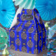 En julklapp som innehåller en mönster av guld julbalkar med gyllene bogar, över en royal blå bakgrund för att tillföra lite elegans till din julklapp ge i julhelg.