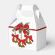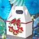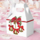 Vit ljussken stil med en bild på framsidan och baksidan av tre guld-klockor med röda kryss på guld rosett band hängande från ett rött band. Det röda bandet är försett med en guld-beskuren röd båge med julgrön, en guld-trimmad poinsettia och en gräs-kon. Se matchande favorittagg, presentpåsar och papper förpackning. Visa hela samlingen med favoritruta för Helgdag i SPECIELLA TUUCHES | Avsnittet Party favors.