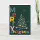 Elegant falsk guld julgran och färgglad God Jul på grön bakgrund gör detta till ett perfekt jul eller högtidskort för vänner och familj.