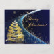 Härlig vykort med den guld- julgranen på djupblå starry bakgrund.