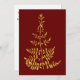 Rött helgdag-kort med stiliserad guld Julgran på kortets framsida. Lägg till ditt personliga meddelande längst bak på kortet eller ta bort och skriva ditt eget meddelande för hand. Den här designen kanaliserar en Victoriansk era och ger en traditionell bild av din helgdag korrespondens.