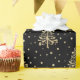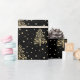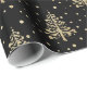 Crinkled guld Julgranar och guld föll snö i ett upprepat mönster på svart.