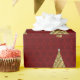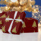 Guld- julgranar på snöig rött slående in papper presentpapper