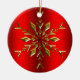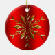 En lyxig, strålande röd och guld Julgran-prydnad med en stor guldstjärna, eller snöflinga, på en bädd av levande, metallröd till ge i Julgran eller i hemmet ett verkligt festligt och elegant som ser fram emot de kommande julhelgdagarna.