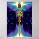 GULD KADUCEUS Medicinsk Symbol Lila Blå Vågor Poster