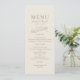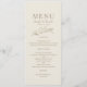Elegant, modern, minimalist, enkel elfenbensvit vigselmeny med unika handritade kärleksfåglar och trendig kalligrafiskrift.
