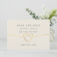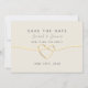 Enkel, elegant, minimalistisk neutral beige bröllopsinbjudan med modern kalligrafi och guldpålad hjärtformad slinga.