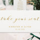 Guld kalligrafi bröllop ta din plats toppkort inbjudningar