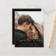 Detta är ett modernt budgetvänligt bröllop "save the date"-kort med en elegant kalligrafisk typsnitt i guld tillsammans med en minimalistisk fotoutformning. Detta budgetvänliga kort är tryckt på ett pappersark.