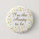 Anpassa med den speciella personen. Denna snygga könsneutrala baby shower, sprinkle eller par shower knappmärke har gyllene kärlekshjärtan och vacker falsk guldskrift kalligrafi. Anpassa med ditt eget namn och datum. Designad av Pure Piglet© på www.zazzle.com/purepiglet*.