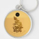 Vackert gyllene papercut från en drake (kinesiskt stil) för det kinesiska nyåret av draken eller födelsedagspressen (för människor som är födda i drakåret) med monogram på anpassadet runt nyckelkedjan metall. Matchande hälsningskort, vykort, klistermärke, mugg..