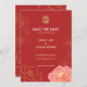 Ett klassiskt kinesiskt inbjudningskort för bröllop spara datum med finare guld och rosa med dubbla xi-tecken.