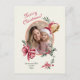 Rosa bögar och rosett band går vackert tillsammans med bra som dekorerade guld jul klockor. Med det här helgdag-vykortet får du ett eget bra-foto i ett ovalt ram med vackra vattenfärgshalter i vintage, inklusive hylsbär och grönska. Det finns ett "God jul" hälsning, liksom ett exempel "från" namn och datum. Se till att redigera dem till din egen text.