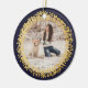 Ett festivt prydnadsföremål med cirkulärt guld som överlappar konetti ring med ett marint blått gräns och ett kundfoto på framsidan. Baksidan har ett textområde som omfattar namn och år. Det här är perfekt för ge presentsäsong eller för att lägga till en minnesstund till ditt eget träd. Underbar för nyfödda, nyfödda, studenter, barn, familjer och husdjur.