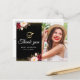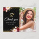 Den här designen har burglösa blommor med guld-konetti och vit penselskripttext. Du kan gärna ändra bilden och tacka dig för meddelandet längst bak.