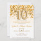 Detta är en inbjudan till en 10-årsjubileumsfest med guldglitter och konfetti tema. 10