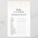 Det här spelet med blandade bebisord med guldconfetti är perfekt för en elegant baby shower eller en sprinkel för en flicka eller pojke. Designen har falskt guldconfetti på vit bakgrund och enkel mörkgrå kalligrafi.