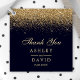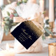 Öka dina bröllopsförmåner med elegantens marinavdelning och guld konetti bröllop märkre. Den moderna designen har en lyxig marin blå bakgrund med en skrynkling av faux guld glitter konetti för en aning gnistra och personlig i guld-text. Perfekt för bröllopsreceptioner, möhippor och förlovningsfester.