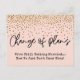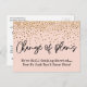 Den här avslappnaden kan vara vad du är tittar för om du vill ha ett unikt kort för att meddela stammen att bröllop har blivit försenat. I en roligt, handskriftsteckensnitt, har jag skapat en bild med texten "Ändra planer". Nedan följer ett meddelande som du kan anpassa till din egen formulering. Mitt förslag lyder: "Vi är fortfarande Gifta sig... Nu vet vi inte när!" Bakgrunden kan ändras till valfri färg! Att övervinna det, festliga, guld-färgad faux konetti verkar falla uppifrån. Använda mallen fält om du vill lägga till egna uppgifter och önskat meddelande. 129 //
