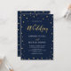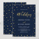 Fira din speciella dag med denna stilrena moderna bröllopsinbjudan. Denna design har chic guldtypografi och enkelt guld konfetti på en marinblå bakgrund. Fler bröllopsinbjudningar och festtillbehör finns tillgängliga i min butik BaraBomDesign.