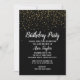 Guld Konfetti på Svart Födelsedagsfest Inbjudningar