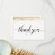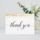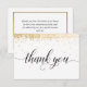 Det här eleganta och festliga tack-kortet har guld- (simulerad folie) konfetti med orden "tack" som visas i ett svart skrivstil. Bakgrunden är vit, men kan ändras till valfri färg. Meddelandet på baksidan kan enkelt anpassas för ditt speciella evenemang. Ett vackert och enkelt sätt att tacka dina vänner och familj. Matchande årsdag inviteringskort och RSVP-kort finns tillgängliga: https://www.zazzle.com/store/grandviewgraphics/products?dp=0&cg=196583251194252126