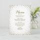 Denna moderna och sofistikerade guld- konfettimiddagmeny kan skräddarsy. Du kan ändra stilsorten och färgerna av mest av texten såväl som bakgrundsfärgen. Designat vid Amelia Carrie och sålt exklusivt till och med GlitterInvitations.com notera: Detta är en grafiskt tryckreproduktion eller konstverk och innehåller inget smutsigt glitter.
