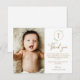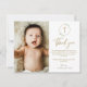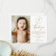 Tack för att du använder Guld Greenery Wandeptism Foto Tack för ditt kort! Den här eleganten är en perfekt för att uttrycka tacksamhet mot nära och kära efter en baptism. Den har ett känsligt grönt andetag, guld kor, och plats för foto från baby. En omhuldad keepy för familj och vänner.