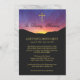 Begravningsinbjudan med ett foto av sol stigning bakom den svarta silhuetten av berg. Ett faux guld kor dekorerar himlar, ovanför ord i Loving Memory i svart skript. Lägg till din inbjudan i elegant guld-färgad typsnitt.