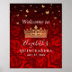 Guld Krona Röd ros Quinceanera Välkommen Party Poster