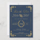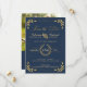 "Guld Laurel Löv marinfoto Spara datummeddelandet om Förlovning." Enkelt, modernt och elegant typografi stil 5 x 7 i marinblått med guld glitter som ser ut som löv blad och ett lager av löv. Förlovningens foto kan enkelt ändras med hjälp av fält-mallen. Konst och design av en internationellt licensierad konstnär, Audrey Jeanne Roberts, upphovsrätt.