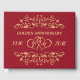 Elegant guldbläckfisken snurrar och gått med guldhjärtan mot en röd bakgrund 50-årsjubiléet Gäst Bok. På motsatt sida - gulddiamant mönster. Bakgrunden till färg kan ändras.