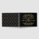 Elegant guldbläckfisken snurrar och gått med guldhjärtan mot en svart bakgrund 50:e Bröllop-årsdagen Gäst Bok. På motsatt sida - gulddiamant mönster. Bakgrunden till färg kan ändras.