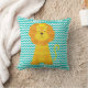 Guld Lejont om Aqua Blue och White Chevron Rand Kudde