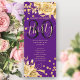 Elegant Glam Guld Lila Blommigt Glitter 30års födelsedag Skriptmall med programtext, blomsterarrangemang, glitter konetti och modernt typografiskt skript.