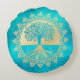Guld Livets träd om turkos Rund Kudde