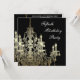Elegant guld ljuskrona svart och guld kvinnas femtioårsfirande festinbjudan.