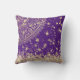 Guld Lotus Mandala med Guld Stars på Lila Kudde
