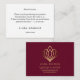 Dra in det här moderna kortet i din kundorder för att säga tack för ditt köp och ett professionell för ge och se utmärkande ut. Den här designen har en illustration av folotus-blomman i faux-guld med anpassningsbar för namn och kontakt med underskattad ruby-röd bakgrund. En utformning av chicen för alla massage-, yoga- eller hälsa-branscher eller helhetsrelaterade hälsoyrken. Denna utformning ingår i en samling. Besök vår butik för andra matchande artiklar. Annan tillgänglig färg. Eventuellt tillgängligt färg på begäran, skriva på citronelladesign@gmail.com