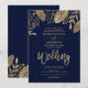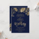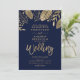Guld löv faller typografi av marinblått bröllop inbjudningar