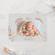 Ljust grått-bakgrund med gyllene löv som gränsar till fotots överkant och nedre lämnat hörn och höger som dekorfärg. Namn och personuppgifter skrivs i handskrivet elegant och ett foto av anpassningsbarna finns i mitten på kortet. Guld är bara ett färg och ingen folie eller gnistra kommer att visas vid utskriften.