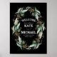 Guld Löv Greenery Black Bröllop Välkommen Poster