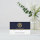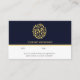 Elegantens visitkort för massagestudios, massagerapi, spas eller hälsa professioneller har en faux guld foil rund form av grenar och löv illustration. Anpassa framsidan med två linjer anpassningsbar på trendigets blå bakgrund och lägg till kontaktuppgifterna för fullt på baksidan med hjälp av mallen. Utformning av chicen för alla hälsa-branscher eller helhetsrelaterade hälsoyrken