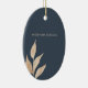 Havsblå bakgrund med ett enda löv i guld på grund lämnat hörn tillsammans med ett minimalistiskt sans serif guld-teckensnitt. Besök vår butik för mer överensstämmande kontorsmaterial och tillbehör i stil i en samling "minimalistiskt löv från guld".