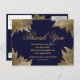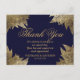 Enkel, modern och elegant faux-guld-design med ritad löv-form mönster på marinblått, Tack-vykort. Denna klassiska och sofistikerade utformning är perfekt för alla snyggtar och trendig, inklusive bröllop och dagligt tillfälle. Alla fotoutskrifter.