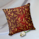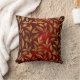 Dekorativ kudde har en mönster i guld löv på en riks burgundröd övertoningsbakgrund som nästan verkar blinka. Båda sidor av kudden har samma mönster.