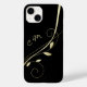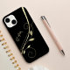 Här är en elegant-telefonväska som har en modern guld löv-snurra mot en dramatisk svart bakgrund. Ditt två brev monogram finns på den lämnat sidan i matchande blek guld.